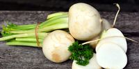 Pro 100 Gramm hat die Mairübe nur ca. 30 Kalorien und enthält Vitamin C und B-Vitamine. Für den typischen Geschmack sorgen ätherische Öle, zudem wirken die in der Schale enthaltenen Senföle antibakteriell.